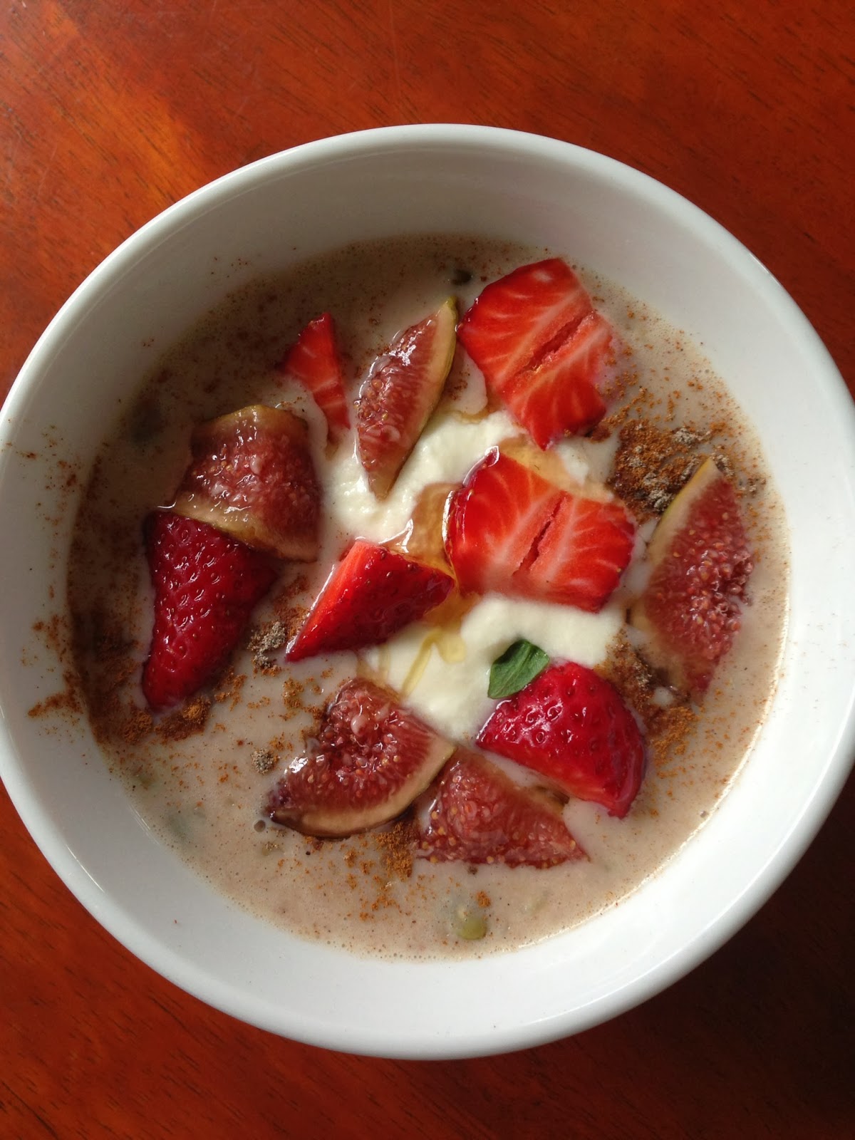 This is a simple recipe for spring, where I am it is still quite cold so this is a nice combination of warming winter foods and cool summer fruits.